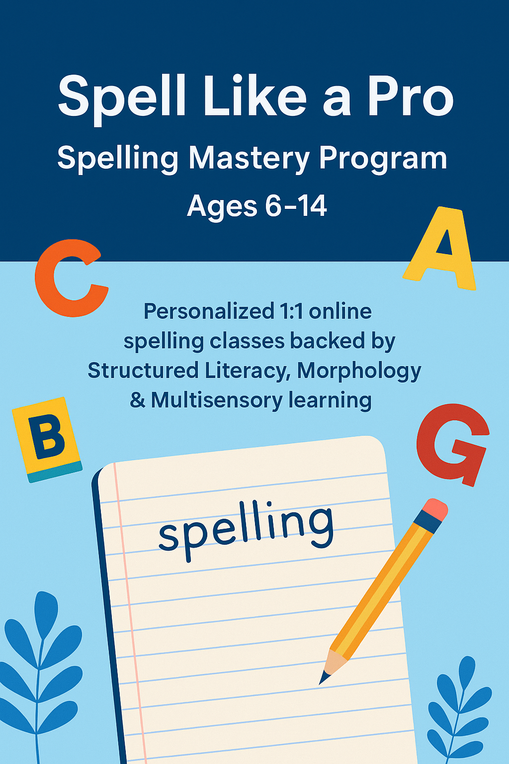 The Spell Like a Pro Spelling Mastery Program is a research-backed, structured literacy curriculum designed for children who struggle with spelling, reading, and written expression. Using powerful methods from phonics, morphology, orthographic mapping, and multisensory learning, this program helps students build strong spelling foundations and apply them confidently in real writing.